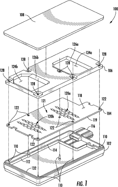Multilayer polymer-based EMI shielding structures can provide enhanced device safety through complementary protection mechanisms. These structures typically combine layers with different functionalities, such as absorption, reflection, and grounding capabilities. By utilizing multiple layers with varying compositions, these shields can effectively attenuate electromagnetic radiation across a broader frequency range while maintaining mechanical integrity and safety compliance, protecting both the device and users.Expand Specific Solutions04 Flame retardant EMI shielding materials