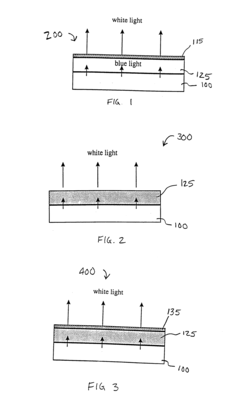 - Combining an organic light emitting device with a layer of photoluminescent material, such as phosphor particles, which absorbs and re-emits light to produce a mixed spectrum, enhancing color stability and uniformity by scattering the emitted light, thereby achieving a high color rendering index and consistent color temperature in the range of 3000-6500 K.