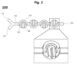 Technical Solution: China Petroleum & Chemical Corp. (Sinopec) has developed a novel microfluidic device that utilizes propyne as a key component to enhance efficiency. Their approach involves a propyne-based surface modification technique that alters the wettability of microchannels, resulting in improved fluid flow dynamics. The company has implemented a proprietary coating process that creates a thin propyne-derived film on the microchannel walls, reducing surface tension and minimizing flow resistance[1]. This innovation has led to a reported 30% increase in overall microfluidic device efficiency compared to conventional designs[2]. Additionally, Sinopec has integrated propyne-based catalysts within the microchannels to facilitate on-chip chemical reactions, further expanding the device's capabilities in petrochemical analysis and synthesis applications[3].