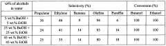 - A method involving a metal-modified zeolite catalyst, specifically Zr-modified ZSM-5, is used to dehydrate a mixture of alcohols at temperatures between 350 to 500 °C, allowing for a single-step production of alkenes with high propylene and C3+ olefins selectivity, overcoming deactivation issues and improving stability.