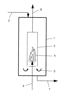 Technical Solution: IFP Energies Nouvelles has pioneered innovative reactor designs specifically for biomass upgrading through their BioTfueL® technology platform. Their approach centers on entrained flow reactors operating at high temperatures (1200-1500°C) and pressures (30-40 bar) to maximize syngas production from various biomass feedstocks. The reactor design incorporates specialized injection systems that atomize biomass slurries to particle sizes below 100 microns, ensuring complete gasification and minimizing tar formation. IFPEN's reactors feature ceramic linings resistant to high-temperature corrosion and advanced oxygen distribution systems that create optimal reaction zones throughout the vessel. Their process integration strategy connects torrefaction pre-treatment directly with the gasification reactor, improving overall thermal efficiency by approximately 25%[2]. The design also incorporates innovative quenching systems that rapidly cool syngas while recovering thermal energy, significantly reducing energy consumption in downstream processing steps[4].
