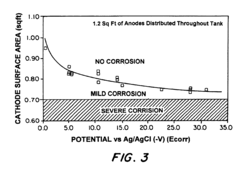 - Optimized anode design and placement to prevent over-protection: Proper design and strategic placement of sacrificial anodes are crucial to prevent over-protection. This includes calculating the optimal number, size, and distribution of anodes based on the structure's surface area and environmental conditions. Specialized anode geometries and configurations can ensure more uniform current distribution, preventing localized areas of excessive protection. Some systems incorporate distance-based placement strategies to maintain appropriate protection levels across the entire protected structure while avoiding over-protection near the anodes.