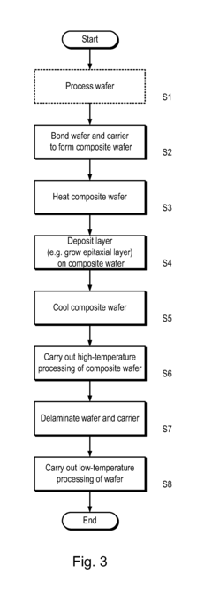 Epitaxial growth processes on silicon carbide wafers are essential for device fabrication. These processes involve the controlled deposition of thin semiconductor layers on the SiC substrate to create specific device structures. Various epitaxial techniques, including chemical vapor deposition (CVD) and molecular beam epitaxy (MBE), are used to grow high-quality epitaxial layers with precise doping profiles and thickness control. The quality of the epitaxial layers significantly impacts the performance of the resulting semiconductor devices.Expand Specific Solutions