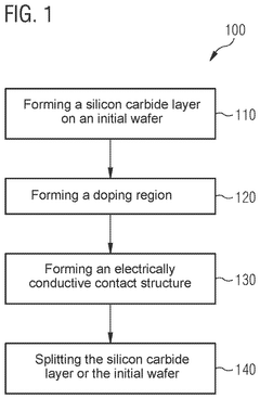 Silicon carbide wafers are extensively used in power electronics due to their superior properties compared to silicon. These applications include high-voltage power devices, electric vehicle components, renewable energy systems, and industrial motor drives. The wide bandgap, high thermal conductivity, and high breakdown field strength of SiC enable the development of smaller, more efficient, and more reliable power electronic devices capable of operating at higher temperatures and voltages.Expand Specific Solutions05 Epitaxial Growth on SiC Wafers