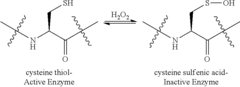 - The use of boronic or borinic acid compounds to inhibit the activity of sulfenic acid-containing proteins by forming a dative bond with the sulfenic acid form of the protein, thereby trapping the oxidized form and inhibiting enzyme activity.