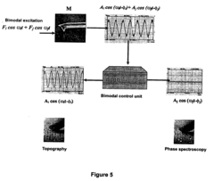 Technical Solution: CSIC has developed a comprehensive multimodal AFM platform specifically designed for challenging new materials characterization. Their approach integrates traditional AFM with advanced spectroscopic techniques through a novel optical path design that enables simultaneous acquisition of nanomechanical and chemical information[1]. For soft and biological materials, CSIC has pioneered a "minimal force imaging" protocol that dynamically adjusts cantilever parameters based on real-time feedback from the sample, preventing deformation while maintaining resolution[3]. Their system incorporates specialized probes with functionalized tips that can be tailored to specific material interactions, particularly valuable for selective chemical mapping of complex composite materials[5]. CSIC has also developed advanced environmental control chambers allowing precise regulation of temperature, humidity, and gas composition during imaging, enabling in-situ studies of material responses to environmental changes[7]. Additionally, their implementation of high-speed data processing algorithms enables real-time correction of thermal drift and other artifacts, significantly improving measurement accuracy for time-sensitive experiments on reactive or unstable new materials.