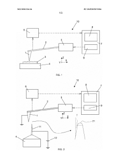Technical Solution: Agilent Technologies has developed a comprehensive scanner alignment system for atomic force microscopy that emphasizes measurement accuracy and repeatability for straight line scanning. Their approach utilizes a flexure-guided scanner design with minimal out-of-plane motion, critical for maintaining scan linearity. Agilent's closed-loop scanner control incorporates multiple position sensors that provide real-time feedback with sub-nanometer resolution. Their MAC (Molecular Alignment Correction) Mode technology actively compensates for piezo nonlinearities and hysteresis effects during scanning operations. Agilent implements a sophisticated calibration protocol using laser interferometry to characterize scanner behavior across different operating conditions and generate correction matrices. Their PicoView software includes automated alignment procedures that analyze test patterns and optimize scanner parameters for straight line performance. Agilent's systems also feature active vibration cancellation that identifies and counteracts external disturbances that could affect scanner trajectory. Additionally, their thermal management system maintains stable operating temperatures to prevent drift in scanner alignment during extended imaging sessions[9][11].