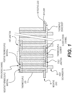Advanced cooling techniques can further enhance thermopile array performance. Active cooling systems using microfluidic channels can provide precise temperature control at cold junctions. Meanwhile, phase-change materials incorporated into array structures can absorb excess thermal energy during peak operation, releasing it during low-demand periods to maintain stable thermal gradients.