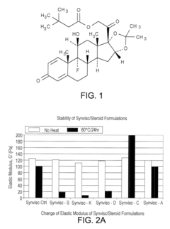 - The combination of hyaluronic acid-related components (HARCs) with triamcinolone hexacetonide (TAH) retains chemical integrity and provides stable viscoelastic properties even after heat sterilization, maintaining suitable shelf life and stability, as compared to compositions without TAH.