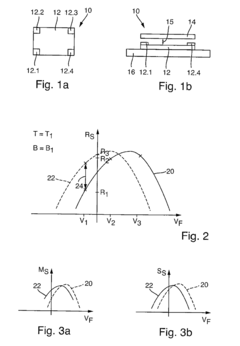 Hardware-based compensation methods typically involve the integration of temperature sensors directly within the Hall sensor package. These additional sensors continuously monitor ambient temperature changes, providing real-time data that can be used to adjust Hall sensor readings. Advanced designs incorporate thermally balanced circuits that minimize temperature gradients across the sensing element, reducing thermal stress and associated measurement errors. Some manufacturers employ specialized materials with complementary temperature coefficients that naturally counteract temperature-induced drift.