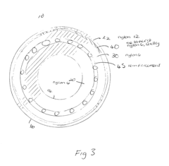 The elastic modulus of Nylon 66 is strongly influenced by its molecular and crystalline structure. Factors such as chain orientation, hydrogen bonding density, and crystalline morphology significantly impact mechanical properties. The semi-crystalline nature of Nylon 66 creates a two-phase system where both crystalline and amorphous regions contribute differently to the overall elastic response. Understanding this structure-property relationship is crucial for designing materials with targeted mechanical performance.Expand Specific Solutions05 Applications leveraging specific elastic modulus properties