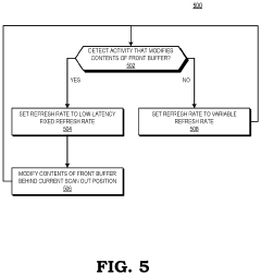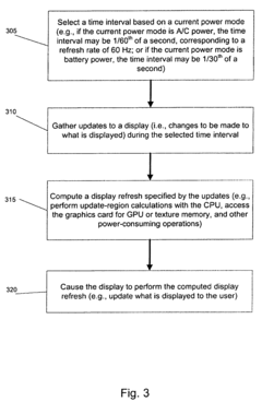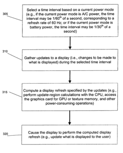 Technical Solution: Intel has integrated VRR capabilities into their graphics solutions through their Adaptive Sync technology, which works in conjunction with their processor power management systems. Their approach focuses on system-level optimization, where the CPU and GPU coordinate to deliver appropriate refresh rates based on workload demands. Intel's implementation allows for dynamic adjustment of processing resources in tandem with display refresh rates, creating efficiency gains during periods of lower visual complexity. Their technology includes intelligent prediction algorithms that anticipate processing needs based on application behavior patterns, pre-emptively adjusting refresh rates to optimize both visual experience and power consumption. Intel has also developed specialized hardware schedulers in their latest GPUs that can rapidly switch between refresh rate states with minimal latency, enhancing the responsiveness of their VRR solution.
