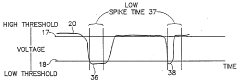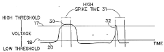 - A fault detector device that continuously monitors digital circuit signals for spike, float, and noise faults using dedicated detectors, generating a characteristic signal for immediate display or storage, allowing users to focus on specific error-indicating signal characteristics without needing to sift through large amounts of data.