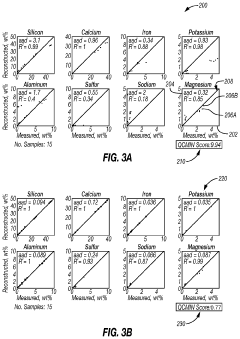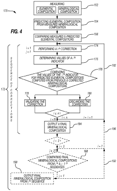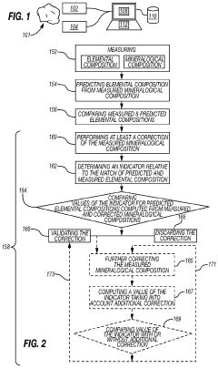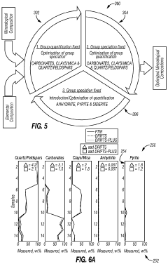 Technical Solution: Schlumberger has developed advanced X-ray diffraction (XRD) and X-ray fluorescence (XRF) techniques specifically optimized for rhodochrosite mineralogical composition determination. Their proprietary TerraTek laboratory services utilize high-resolution XRD coupled with Rietveld refinement analysis to quantify rhodochrosite content with precision up to 0.5% in complex mineral assemblages[1]. Additionally, their QEMSCAN (Quantitative Evaluation of Minerals by Scanning Electron Microscopy) technology creates detailed mineral maps that distinguish rhodochrosite from other manganese carbonates by combining backscattered electron imaging with energy-dispersive X-ray spectroscopy[2]. For field applications, Schlumberger has developed portable Fourier Transform Infrared Spectroscopy (FTIR) tools that can identify rhodochrosite's characteristic absorption bands in the 1400-1450 cm⁻¹ range, allowing for rapid on-site mineral identification[3].