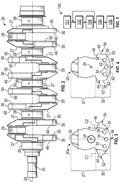 Technical Solution: GM has developed advanced crankshaft dynamic balancing techniques incorporating multi-plane balancing systems that simultaneously measure and correct imbalances across multiple planes. Their technology utilizes high-precision laser measurement systems capable of detecting imbalances as small as 0.1 gram-millimeters[1]. GM's approach integrates real-time monitoring during the manufacturing process with adaptive correction algorithms that automatically determine optimal material removal locations. The company has also pioneered the use of holistic powertrain balancing that considers the entire rotating assembly (crankshaft, flywheel, damper) as an integrated system rather than balancing components individually[3]. This comprehensive approach includes thermal compensation algorithms that account for dimensional changes during engine operation, ensuring balanced performance across all operating conditions.