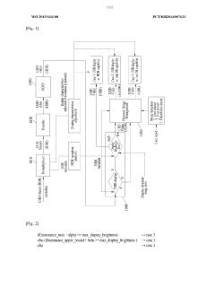 Techniques for managing and enhancing color reproduction of HDR content on ULED displays. This includes methods for expanding color gamut, improving color accuracy, and optimizing color mapping to take full advantage of ULED's wide color capabilities.Expand Specific Solutions05 Adaptive content optimization for ULED HDR