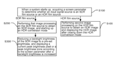 Technical Solution: LG's ULED HDR enhancement technology utilizes advanced local dimming algorithms and quantum dot color filters to significantly improve contrast and color accuracy. Their AI-powered processor analyzes and optimizes each frame in real-time, adjusting brightness and color levels to bring out the finest details in both bright and dark scenes. LG also implements dynamic tone mapping to preserve highlight details and expand the overall dynamic range of HDR content.