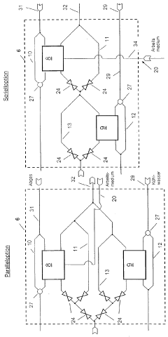 Integration of smart control systems optimizes the operation of heat exchanger networks through real-time monitoring and adaptive control strategies. These systems employ sensors, predictive algorithms, and automated valves to maintain optimal thermal performance under varying conditions. Dynamic adjustment of flow rates and temperatures ensures maximum energy efficiency while preventing fouling and other operational issues that could reduce heat transfer effectiveness.Expand Specific Solutions