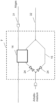 Technical Solution: DENSO has developed an innovative heat exchanger integration system for smart grids called "E-Thermal Network" that builds upon their automotive thermal management expertise. Their solution features compact, high-efficiency plate heat exchangers with enhanced turbulence promoters that increase heat transfer rates while minimizing pressure drop. DENSO's system incorporates cascaded heat recovery networks that can extract thermal energy across multiple temperature gradients, maximizing overall system efficiency. The company has pioneered micro-channel heat exchangers with optimized flow distribution manifolds that achieve up to 30% higher heat transfer coefficients compared to conventional designs. Their technology includes intelligent thermal routing capabilities that dynamically adjust flow paths based on real-time demand signals from the grid, enabling responsive load management during peak periods. DENSO has also developed specialized heat exchanger coatings that significantly reduce fouling in open-loop systems, extending maintenance intervals and maintaining consistent performance.
