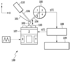 Sophisticated feedback control systems and signal processing algorithms enhance AFM image resolution by optimizing tip-sample interactions in real-time. Advanced control algorithms adjust scanning parameters dynamically to maintain optimal imaging conditions. Digital signal processing techniques, including noise filtering, drift correction, and image reconstruction algorithms, extract maximum information from raw data. These computational approaches can achieve resolution improvements without hardware modifications.Expand Specific Solutions04 Operating mode innovations