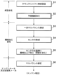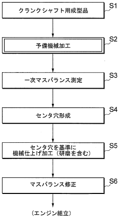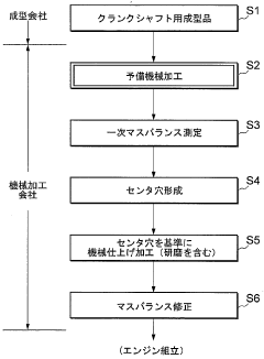 - A method that includes a preliminary machining step to reduce the draft portion of crankshaft moldings, followed by center hole formation and final machining to precise dimensions, optimizing the position of the center hole and reducing the need for subsequent mass balance correction, thereby minimizing errors and improving die management.