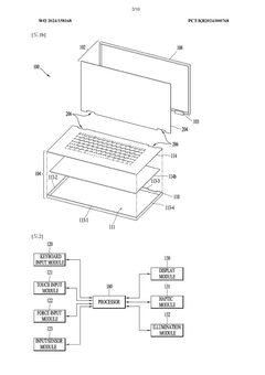 This point focuses on improving the energy efficiency of QLED displays in user interface applications. It covers innovations in power management, low-power operation modes, and adaptive brightness control. These advancements aim to extend battery life and reduce energy consumption in QLED-based devices.Expand Specific Solutions05 Flexible and foldable QLED interfaces
