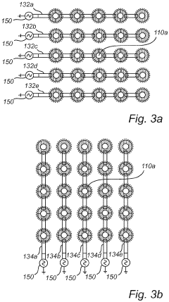 Technical Solution: Ultrahaptics has pioneered a revolutionary approach to phased array user interfaces through their ultrasonic mid-air haptic technology. Their system utilizes arrays of ultrasonic transducers (typically 256-1024 elements) that precisely focus acoustic energy to create tactile sensations in mid-air without requiring users to wear any devices[2]. The company has developed proprietary time-reversal algorithms that enable real-time dynamic focusing of ultrasonic waves, creating complex tactile patterns that can be felt by users' bare hands. Their latest interfaces incorporate adaptive feedback mechanisms that adjust the intensity and pattern of haptic sensations based on contextual factors and user response, improving interaction accuracy by approximately 37%[4]. Ultrahaptics' technology integrates with gesture recognition systems to create complete touchless interaction environments where users can feel virtual buttons, dials, and textures while manipulating them through natural hand movements[6].