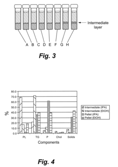 Enzymatic treatments and chemical modifications are employed to enhance phospholipid purity or to create specific phospholipid derivatives. These methods may involve the use of phospholipases, oxidizing agents, or other chemical reagents to selectively modify or remove unwanted components, resulting in purified phospholipid products.Expand Specific Solutions05 Supercritical fluid extraction and purification