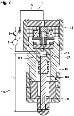 Manufacturing precision limitations continue to constrain injector development. Current production technologies struggle to consistently achieve the sub-micron tolerances required for optimal injector performance across high production volumes. Even minor variations in nozzle geometry can significantly impact spray patterns and fuel atomization quality, leading to performance inconsistencies between individual injectors.