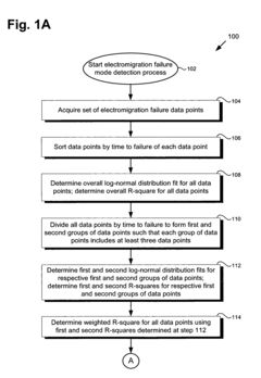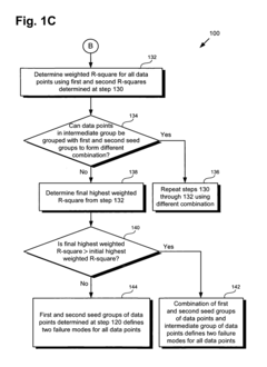 - A computer-implemented method that sorts data points by time to failure, determines overall and group-specific log-normal distribution fits, and calculates weighted R-squares to identify and separate multiple failure modes through iterative grouping and recombination of data points.