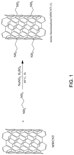 Nanomaterials can be functionalized with alkyl groups to modify their surface properties. This functionalization can enhance the compatibility of nanomaterials with various matrices, improve their dispersion, and alter their physical and chemical characteristics. The alkyl groups can range from short-chain to long-chain, affecting the resulting properties of the nanomaterials.- Alkyl-functionalized nanomaterials: Nanomaterials can be functionalized with alkyl groups to modify their surface properties. This functionalization can enhance the compatibility of nanomaterials with various matrices, improve their dispersion, and alter their physical and chemical characteristics. The alkyl groups can range from short-chain to long-chain, affecting the resulting properties of the nanomaterials.