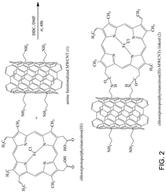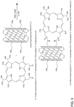 - A nanomaterial formed by functionalizing carbon nanotubes with porphyrin rings through amide linkages, allowing for the covalent bonding of aminoalkyl groups, which is used to adsorb organic dyes and heavy metals from aqueous solutions.