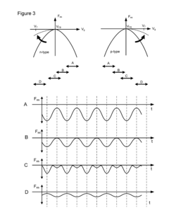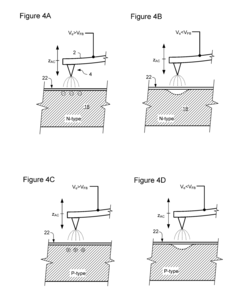 - The method involves generating a periodic motion of a probe tip with a correlated oscillatory bias signal, analyzing the response to infer semiconductor surface properties without requiring additional capacitance sensors, leveraging asymmetric electrostatic force-bias curves to differentiate between p-type and n-type semiconductors based on cantilever dynamics.