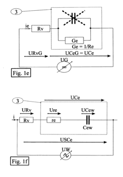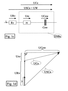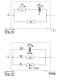 - The method involves using phase diagrams derived from equivalent circuit diagrams to modify the measuring cell's wiring and calculation methods, allowing for the determination of dielectric properties by adjusting alternating voltage to match direct voltage across electrodes, and employing auxiliary resistors, capacitances, or inductances to enhance measurement accuracy at low frequencies.