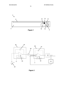 Optimizing the physical design of proximity sensors can significantly reduce signal drop-off. This includes using specialized materials, antenna configurations, and sensor geometries that enhance signal propagation. Improved sensor designs incorporate elements that focus the sensing field, maintain signal strength over greater distances, and reduce susceptibility to interference, resulting in more consistent detection performance.Expand Specific Solutions03 Compensation mechanisms for environmental factors