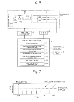 Technical Solution: Shimadzu's approach to minimizing GC-MS baseline noise incorporates advanced digital filtering algorithms and hardware innovations. Their Advanced Flow Technology (AFT) optimizes carrier gas flow paths to reduce baseline fluctuations, while their proprietary noise-reduction algorithms apply sophisticated mathematical filters to chromatogram data in real-time. The company's latest GC-MS systems feature temperature-controlled ion sources that maintain consistent ionization conditions, significantly reducing thermal noise contributions. Additionally, Shimadzu implements active column bleed compensation technology that automatically subtracts column bleed profiles from analytical results, providing cleaner baselines even at high temperatures. Their systems also utilize high-precision electronic pressure control (EPC) that minimizes pressure fluctuations, a common source of baseline instability.