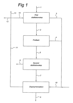 Technical Solution: Air Liquide has developed a cryogenic distillation process for high-purity carboxylic acid production. This method utilizes extremely low temperatures to exploit differences in volatility between the target acid and impurities. The process involves a series of cryogenic columns operating at different pressure and temperature conditions, allowing for precise fractionation. Air Liquide's technology can achieve purities of up to 99.99% for certain carboxylic acids[5]. The company has also integrated heat recovery systems to improve overall energy efficiency, reducing energy consumption by up to 25% compared to conventional distillation processes[6].