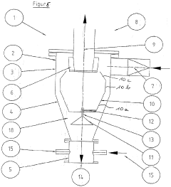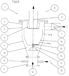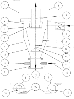 Technical Solution: UOP LLC has developed advanced cyclone separator designs optimized for fine particle separation. Their approach involves computational fluid dynamics (CFD) modeling to simulate particle trajectories and optimize the cyclone geometry. They have implemented a novel vortex finder design that enhances separation efficiency for particles below 10 microns[1]. UOP's cyclones feature a tapered body with an optimized inlet configuration to create a strong centrifugal force field. The company has also introduced a patented anti-re-entrainment baffle system that prevents fine particles from being re-entrained into the clean gas stream[2]. Additionally, UOP has developed multi-cyclone systems with optimized spacing and flow distribution to handle high throughput applications while maintaining separation performance for fine particles[3].