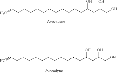 - A process involving extraction with organic solvents, saponification, addition of calcium to precipitate calcium soaps, and subsequent separation and purification using ethyl acetate or water, allowing for the selective extraction of avocadene and avocadyne without the need for chromatographic steps, achieving high purity without toxic solvents like hexane.