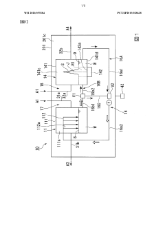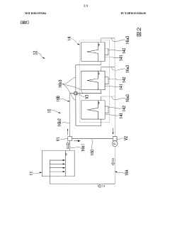 Technical Solution: LG Chem has developed an advanced humidity control system utilizing lithium chloride as the primary desiccant material in their environmental management solutions. Their technology incorporates a proprietary lithium chloride impregnation process for high-performance absorption media that maximizes moisture capture efficiency while minimizing salt migration. The system employs a continuous liquid desiccant circulation design where lithium chloride solution is distributed over specialized heat and mass exchangers, allowing simultaneous dehumidification and cooling. LG Chem's innovation includes a regeneration system that operates at temperatures below 80°C, enabling integration with waste heat sources or solar thermal systems. Their control algorithm dynamically adjusts solution concentration and flow rates based on real-time humidity measurements and predictive modeling, achieving energy savings of up to 45% compared to conventional cooling-based dehumidification. Recent advancements include the development of anti-corrosive materials specifically designed to withstand the highly hygroscopic nature of lithium chloride, extending system lifespan and reducing maintenance requirements.