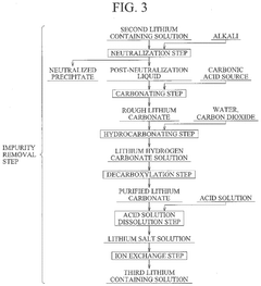 - High-purity lithium hydroxide for battery applications: High-purity lithium hydroxide is critical for lithium-ion battery production, particularly for cathode materials. Battery-grade lithium hydroxide typically requires purity levels exceeding 99.5%, with strict limits on impurities like sodium, calcium, and heavy metals. Advanced purification techniques are developed specifically to meet the stringent requirements of the battery industry, as impurities can significantly impact battery performance, safety, and lifespan.