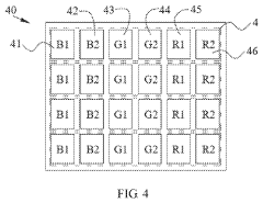 Advanced driving methods and compensation algorithms can significantly improve OLED pixel efficiency. These include adaptive brightness control, dynamic voltage scaling, and real-time compensation for aging effects. By implementing sophisticated driving schemes that adjust current levels based on image content and display conditions, power consumption can be reduced while maintaining optimal visual quality. Additionally, feedback mechanisms can monitor and adjust pixel performance over time to maintain consistent efficiency throughout the display's lifetime.Expand Specific Solutions05 Pixel arrangement and subpixel sharing