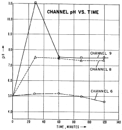 Artifactual pH drifts in isoelectric focusing can be caused by several factors including electroendosmosis, ampholyte migration, and electrode reactions. These phenomena can lead to distortion of the pH gradient over time, affecting the resolution and reproducibility of protein separation. Understanding these causes is crucial for developing methods to minimize or correct pH drift during isoelectric focusing procedures.- Causes of pH drift in isoelectric focusing: Artifactual pH drifts in isoelectric focusing can occur due to various factors including electroendosmosis, carrier ampholyte instability, and electrode reactions. These phenomena can lead to distortion of the pH gradient over time, affecting the accuracy and reproducibility of protein separation. Understanding these causes is essential for developing methods to minimize or correct for pH drift during isoelectric focusing procedures.