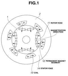 Strengths: Industry-leading expertise in magnet segmentation and coating technologies; maintains high magnetic performance while reducing losses; scalable manufacturing processes for mass production. Weaknesses: Higher production costs compared to standard magnets; potential mechanical integrity issues with segmented designs; coating durability concerns in harsh operating environments.