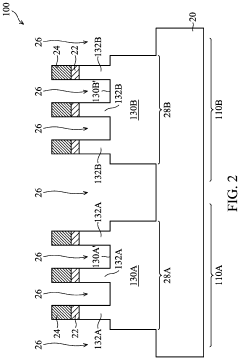 Work function engineering techniques are employed to control threshold voltage variability in FinFET devices. By carefully selecting gate materials and modifying their work functions, manufacturers can achieve more consistent device performance. This approach includes using metal gates with appropriate work functions, gate stack engineering, and interface treatments to minimize random variations in threshold voltage across the chip.Expand Specific Solutions04 Doping strategies for variability management