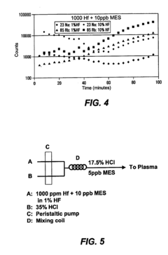 Mathematical correction algorithms can be applied to ICP-MS data to reduce or eliminate spectral interferences. These methods include equations that account for known interference patterns, isotope ratio calculations, and statistical approaches to separate analyte signals from interfering species. Advanced software implementations can perform real-time corrections during analysis, improving accuracy without requiring additional hardware modifications. These mathematical approaches are particularly useful for handling isobaric interferences that cannot be resolved through physical separation methods.Expand Specific Solutions03 Sample preparation techniques