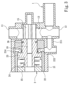 Technical Solution: Toyota's approach to reducing oil consumption in modified V8 engines comparable to the LS2 centers on their "Integrated Oil Management System" (IOMS). This comprehensive solution begins with their patented three-piece oil ring design featuring a specialized nitrided steel expander with optimized tension characteristics for high-performance applications. Toyota employs a proprietary DLC (Diamond-Like Carbon) coating process for piston rings that significantly reduces friction while maintaining excellent sealing properties even under extreme conditions[1]. Their system includes redesigned cylinder head oil drain-back pathways with enlarged channels and optimized routing to prevent oil pooling. For modified builds, Toyota has developed specialized valve stem seals using their advanced "Adaptive Elastomer Technology" that maintains sealing integrity across a wider temperature range than conventional materials. Toyota's solution also incorporates a revised PCV system with multi-stage oil separation capabilities, featuring their patented centrifugal separator design that effectively removes oil from blow-by gases before they can enter the intake system[3]. Additionally, they've implemented advanced ECU mapping strategies that optimize oil pressure based on engine load and RPM conditions.