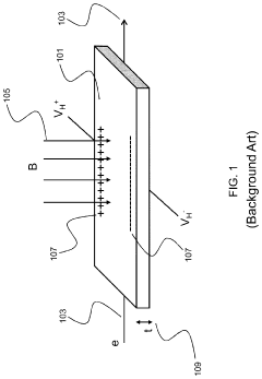 Technical Solution: Texas Instruments has pioneered a multi-faceted approach to Hall effect sensor noise reduction combining both analog and digital techniques. Their DRV5000 series implements spinning current techniques that periodically reverse the biasing of the Hall element to cancel offset errors and reduce 1/f noise. TI's sensors feature integrated low-noise amplifiers with carefully optimized input stages to minimize thermal noise contribution. The company has developed advanced filtering techniques including switched-capacitor filters and programmable digital filters that allow users to balance between noise reduction and response time based on application requirements. TI's sensors also incorporate temperature compensation circuits that adjust gain and offset parameters across the operating temperature range to maintain consistent performance. Their latest innovations include chopper-stabilized amplifiers with auto-zeroing capabilities that periodically reset the signal path to eliminate drift.