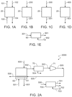 Technical Solution: China Petroleum & Chemical Corp. (Sinopec) has developed an innovative approach to regenerate sorbents using waste heat in their refinery operations. Their method involves a multi-stage heat recovery system that captures low-grade waste heat from various processes. This recovered heat is then used to regenerate amine-based CO2 capture sorbents, significantly reducing the energy penalty associated with carbon capture. The system integrates seamlessly with existing refinery infrastructure, utilizing heat exchangers and thermal storage units to optimize heat transfer efficiency. Sinopec's approach has demonstrated a 30% reduction in regeneration energy requirements compared to conventional steam-based methods[1][3]. The company has also implemented advanced process control algorithms to dynamically adjust regeneration parameters based on real-time plant conditions, further enhancing overall efficiency.
