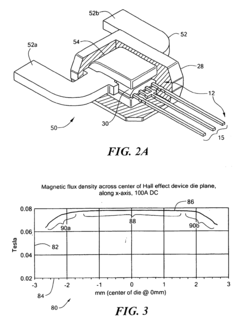 Technical Solution: Honeywell has developed a comprehensive retrofit solution for integrating Hall Effect sensors into legacy systems through their Smart Sensor Retrofit Kit. This technology enables non-invasive installation of Hall Effect sensors onto existing equipment without significant system modifications. The solution incorporates wireless connectivity options (including Bluetooth and Wi-Fi) to transmit sensor data to modern control systems, effectively bridging the gap between analog legacy systems and digital monitoring platforms[1]. Their approach includes specialized mounting brackets and adapters designed specifically for retrofitting scenarios, allowing sensors to be positioned optimally without permanent alterations to the original equipment. Honeywell's solution also features signal conditioning modules that convert Hall Effect sensor outputs to match the input requirements of legacy control systems, ensuring compatibility with existing infrastructure while providing enhanced measurement capabilities[3].